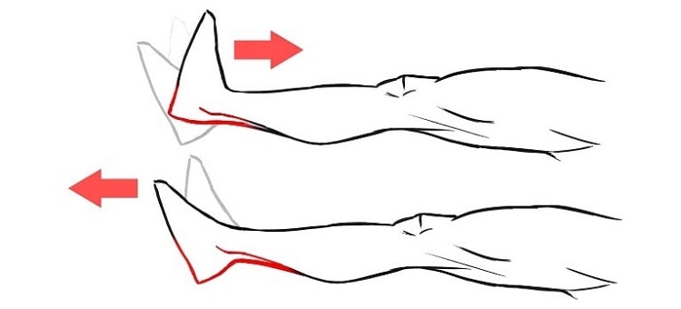 پا را دراز کنید و انگشتان را به سمت خود بکشید.