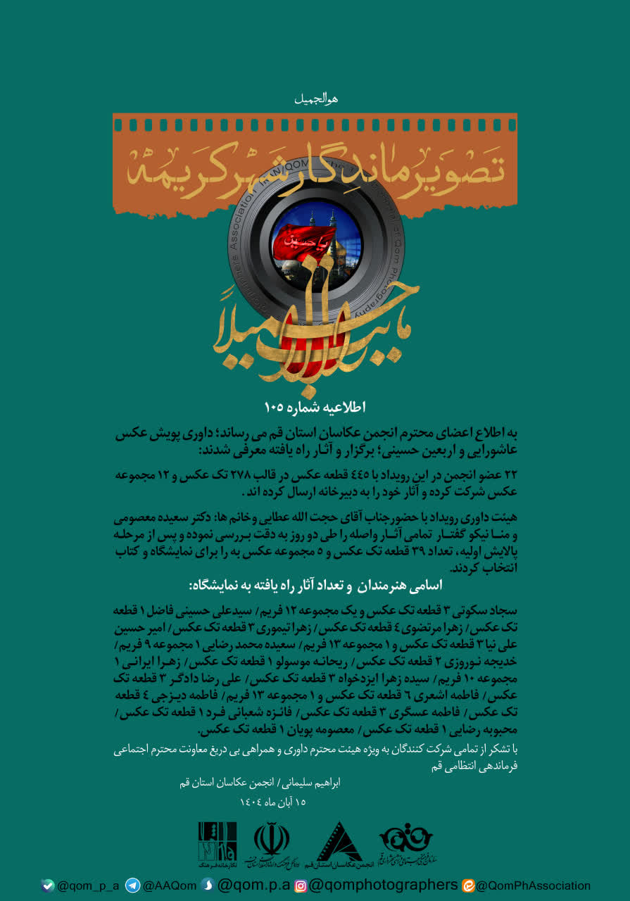 به اطلاع اعضای محترم انجمن عکاسان استان قم می رساند: